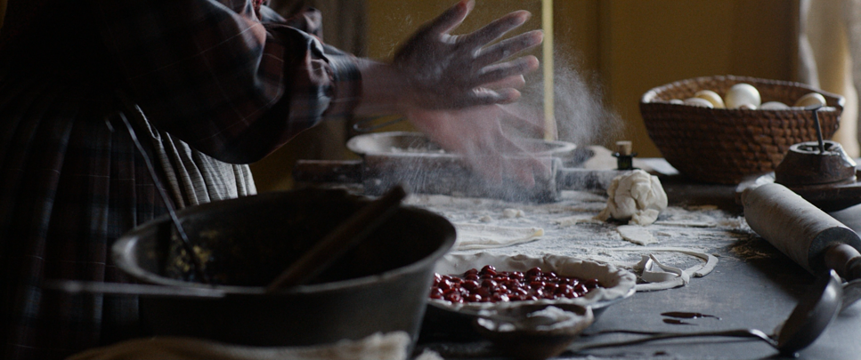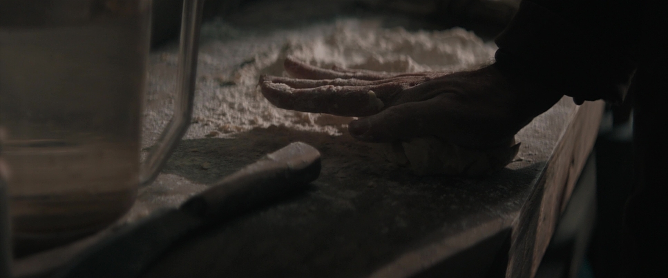 Innklippsbilder fra kjøkkenet viser deigene som lages, pakkes og gjøres klare til restauranteierne. Alt virker lekende lett.